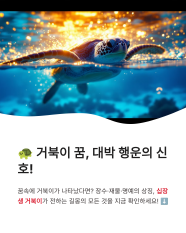 안녕하세요! 오늘도 여러분의 밤 사이 신비로운 경험을 풀이해 드릴 블로그 가이드입니다. 여러분, '거북이' 하면 무엇이 가장 먼저 떠오르시나요? 아마 대부분 장수, 인내, 그리고 느리지만 확실한 승리를 떠올리실 거예요.