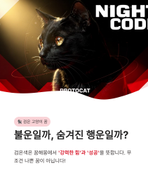 다만, 검은 고양이가 나를 빤히 쳐다보며 기분 나쁘게 울거나 위협적이었다면, 주변에 나를 시기 질투하는 사람이 있음을 경고하는 신호일 수 있어요. 하지만 단순히 검은 고양이 꿈 해몽은 무서운 것이 아니라, 나를 보호해 주는 영적인 수호신이 나타난 것으로도 볼 수 있으니 긍정적인 마음을 가져보시길 추천드려요!