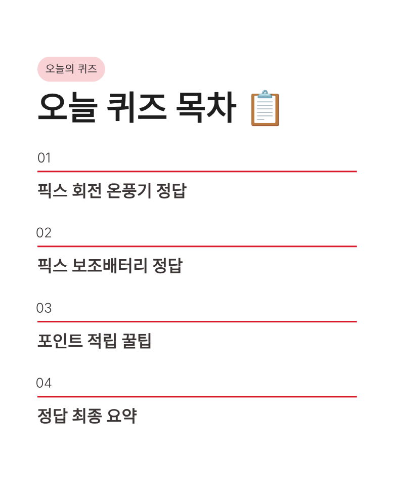 🌡️ 3월 16일 캐시워크 퀴즈정답 : 픽스 회전 온풍기