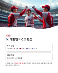 우리 대한민국은 이번에 C조에 편성되었습니다. 경기는 모두 일본 야구의 성지, 도쿄돔에서 열리는데요. C조에는 대한민국을 포함해 숙적 일본, 대만, 호주, 체코가 포진해 있습니다.
