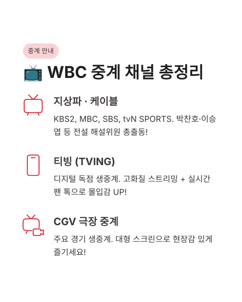 📺 WBC일정 TV 중계 및 OTT 온라인 시청 방법