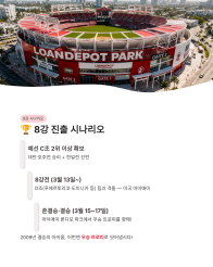 8강에서 승리하면 꿈의 무대인 준결승(15~16일)과 대망의 결승전(17일)이 미국 마이애미의 론디포 파크에서 열립니다. 우리 대표팀이 마이애미행 비행기를 탄다면 그것만으로도 한국 야구의 부활을 알리는 신호탄이 될 것 같아요. 2009년 결승전의 아쉬움을 이번에는 꼭 우승 트로피로 씻어냈으면 좋겠습니다!